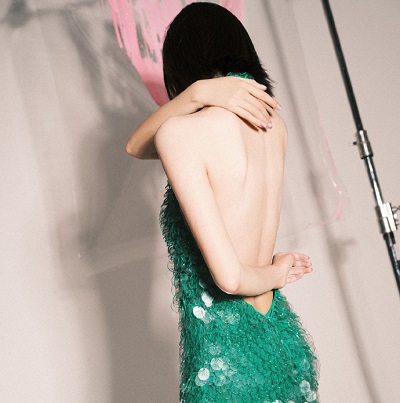 唐艺昕绿裙露背大片小秀性感 利落短发造型气场全开