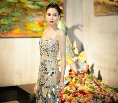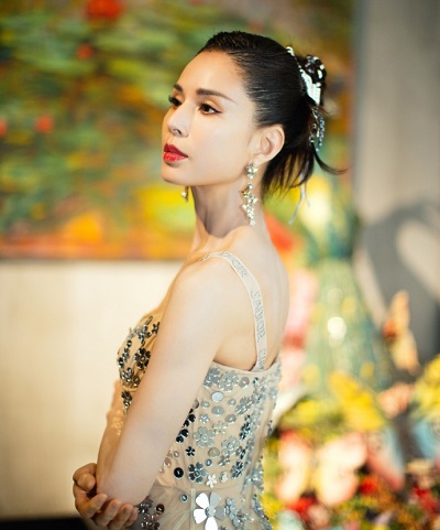 李若彤穿亮片吊带裙蛮腰纤细 梳丸子头露天鹅颈气质出众