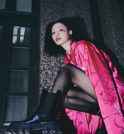 钟楚曦最新造型写真曝光,她穿粉红色印花衬衫搭配双马尾发型鬼马甜酷,黑丝秀美腿,暗黑爱心妆时尚感拉满。