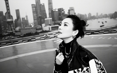 高圆圆窗边拍美照 穿白色连衣裙小露香肩