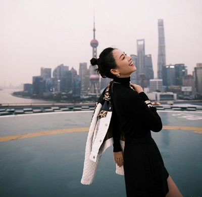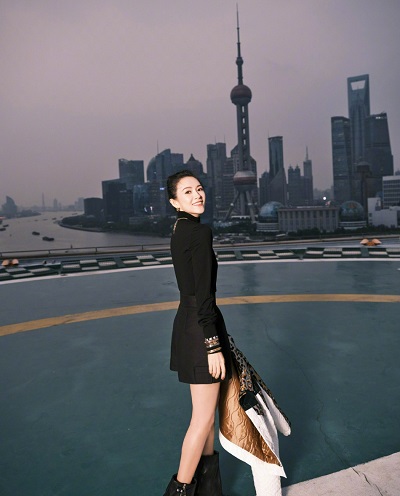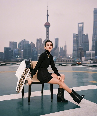 章子怡黑色短裙搭豹纹外套简约高级 扎减龄丸子头状态满分