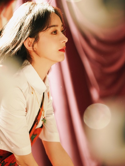 工作室晒出一组赵丽颖写真大片。照片中,赵丽颖身穿白色衬衣红色吊带裙演绎复古风,长发披肩在阳光下更显温柔气质。