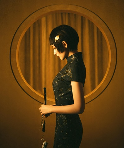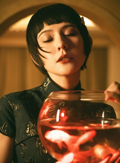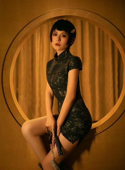 热依扎短发旗袍造型